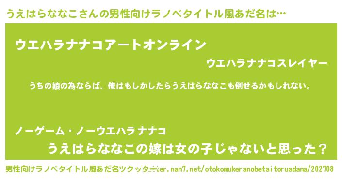 | 女子向けラノベタイトル風あだ名 | 『うえはらななこの婚約者』 |