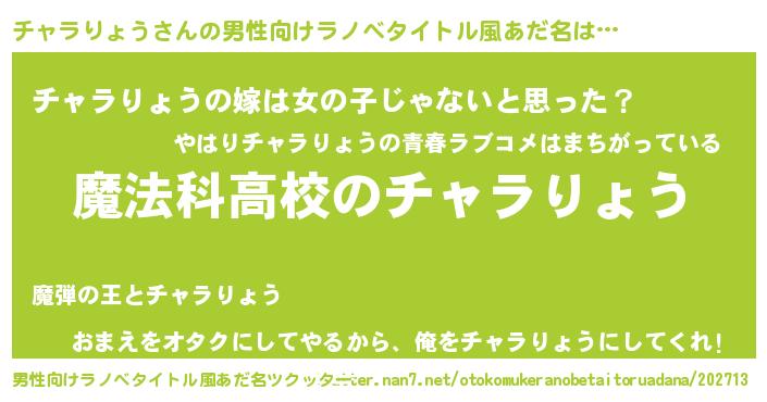 | 女子向けラノベタイトル風あだ名 | 『チャラりょうなんてお断りですっ。』 |