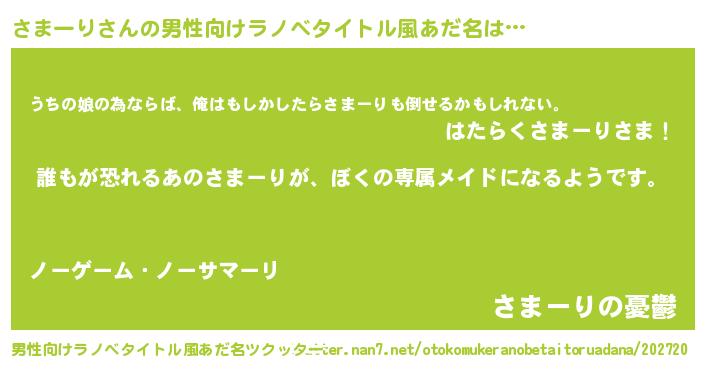 | ヒーロー風カッコイイあだ名 | 『ネオサマーリ』『ウルトラさまーりマン』 |