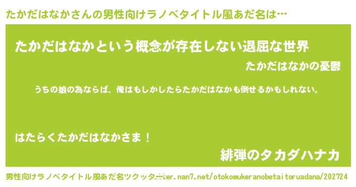 | ファンタジー風あだ名 | 『エターナルタカダハナカー』 |