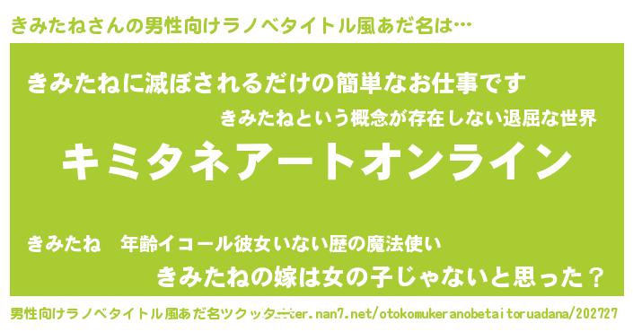 | 胡散臭い通販商品みたいなあだ名 | 『億万長者になれる水晶球…その名も「きみたね」』 |