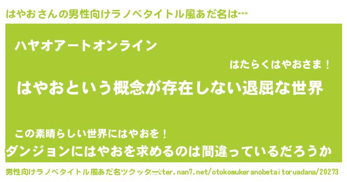 | ヘコむあだ名 | 『はやお(笑)』『はやにゅー』 |
