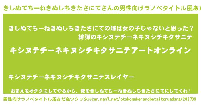 | 料理風あだ名 | 『節約★きしぬてちーねきぬしちきたさにてと油揚げの玉子丼』 |