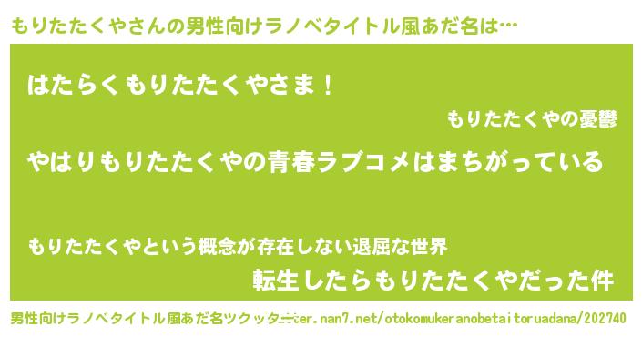 | ファンタジー風あだ名 | 『エターナルモリタタクヤー』 |
