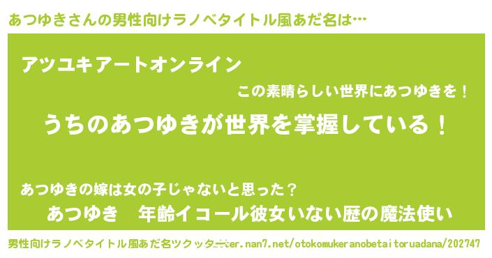 | 女子向けラノベタイトル風あだ名 | 『男装あつゆきの憂鬱な任務』 |