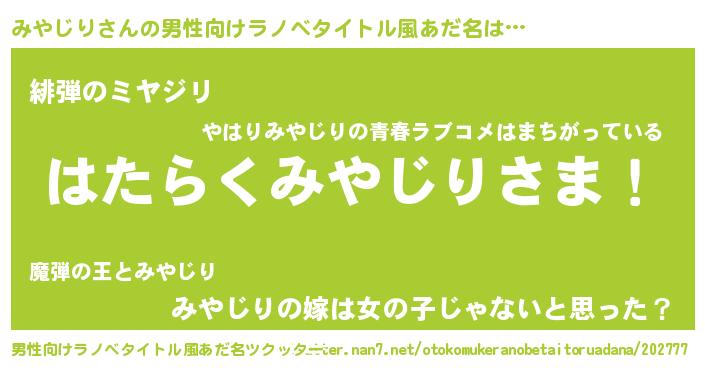 | 胡散臭い通販商品みたいなあだ名 | 『信頼と実績のペンダント…その名も「みやじり」』 |