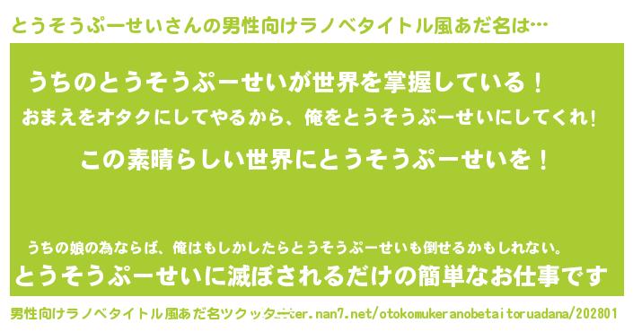 | 意味不明あだ名 | 『住所不定無職とうそうぷーせい(68歳)』 |