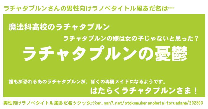 | 胡散臭い通販商品みたいなあだ名 | 『モテモテ間違いなし水晶球…その名も「ラチャタプルン」』 |