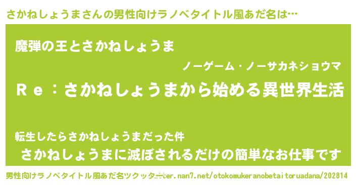 | 意味不明あだ名 | 『自称さかねしょうま』 |