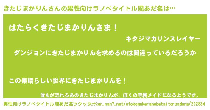 | 胡散臭い通販商品みたいなあだ名 | 『信頼と実績のサプリメント…その名も「きたじまかりん」』 |
