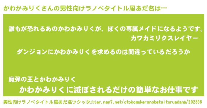 | 女子向けラノベタイトル風あだ名 | 『かわかみりくは平凡を望む』 |