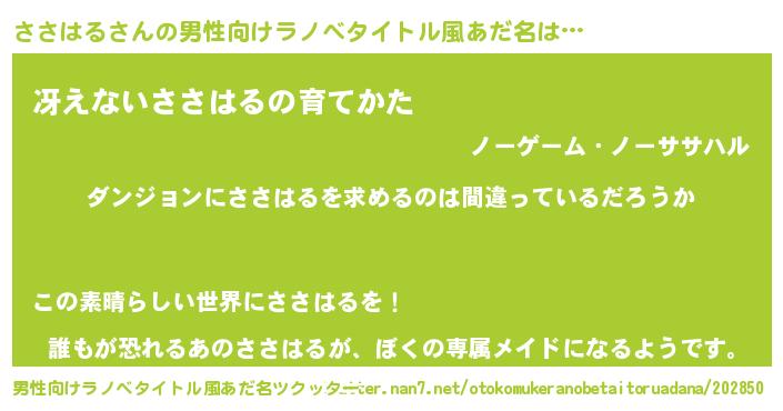 | 女子向けラノベタイトル風あだ名 | 『ささはるは平凡を望む』 |