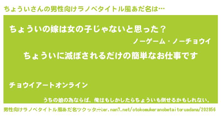 | 意味不明あだ名 | 『とにかく怪しいちょうい』 |
