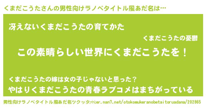 | 女子向けラノベタイトル風あだ名 | 『悪役くまだこうたに転生したようですが、知った事ではありません』 |