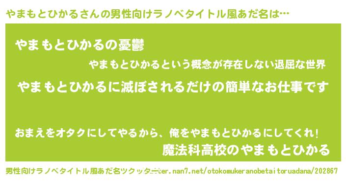 | 女子向けラノベタイトル風あだ名 | 『横柄やまもとひかると宰相陛下』 |
