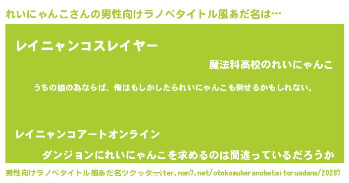 | 女子向けラノベタイトル風あだ名 | 『れいにゃんこの婚約者』 |