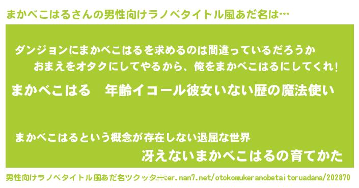 | 意味不明あだ名 | 『ヨモギ科まかべこはる属』 |