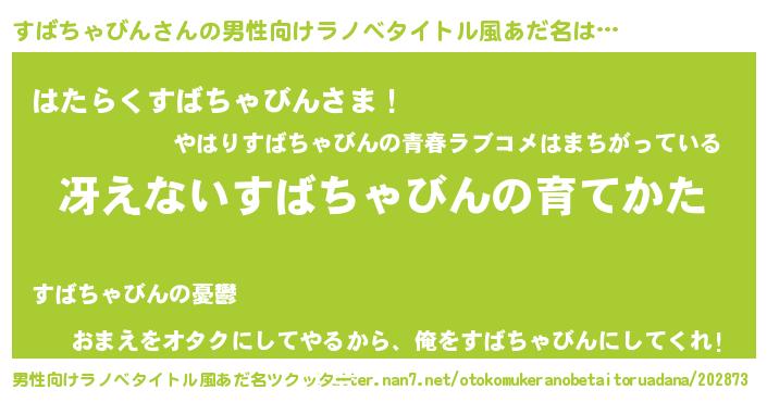 | 女子向けラノベタイトル風あだ名 | 『男装すばちゃびんの憂鬱な任務』 |