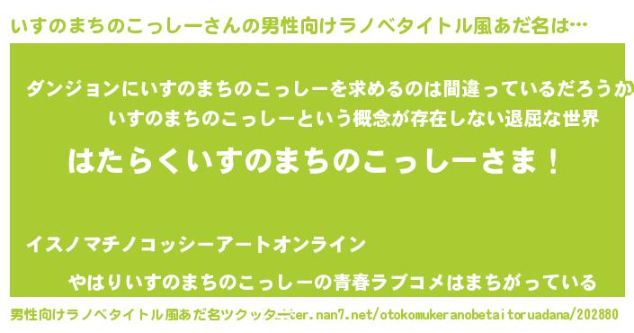 | 意味不明あだ名 | 『とにかく怪しいいすのまちのこっしー』 |