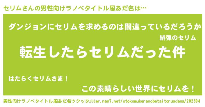 | 意味不明あだ名 | 『もやし科セリム属』『自称セリム』 |