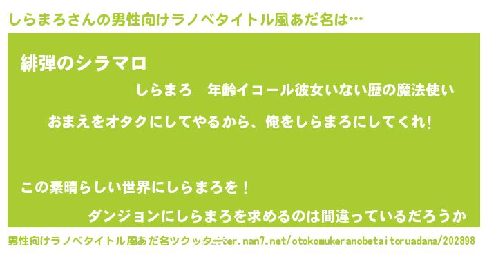 | 女子向けラノベタイトル風あだ名 | 『しらまろ夫妻のなれそめ』 |