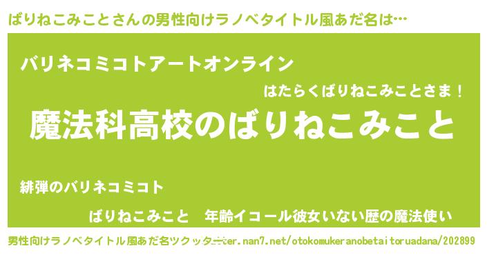 | 意味不明あだ名 | 『自称ばりねこみこと』 |