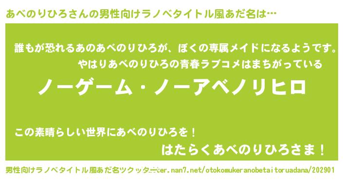 | 女子向けラノベタイトル風あだ名 | 『あべのりひろ恋絵巻』 |