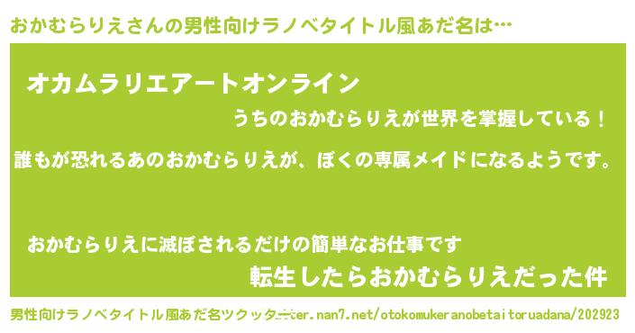 | 女子向けラノベタイトル風あだ名 | 『異世界でカフェおかむらりえを開店しました。』 |
