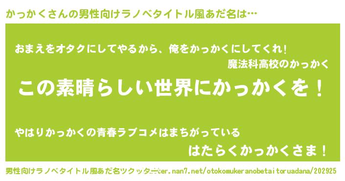 | 意味不明あだ名 | 『住所不定無職かっかく(86歳)』 |