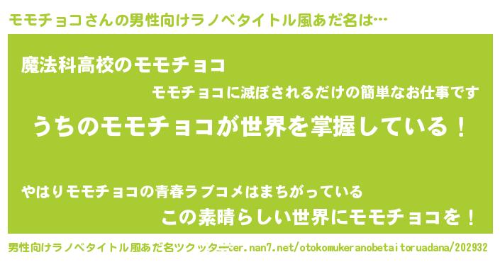 | 女子向けラノベタイトル風あだ名 | 『男装モモチョコの憂鬱な任務』 |