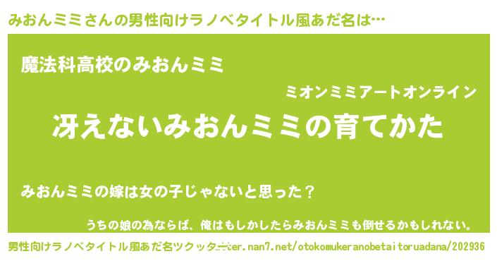 | 女子向けラノベタイトル風あだ名 | 『男装みおんミミの憂鬱な任務』 |