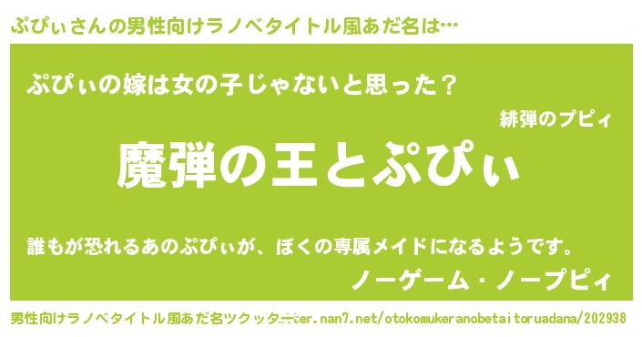 | 女子向けラノベタイトル風あだ名 | 『乙女ゲームの破滅フラグしかない悪役ぷぴぃに転生してしまった…』 |