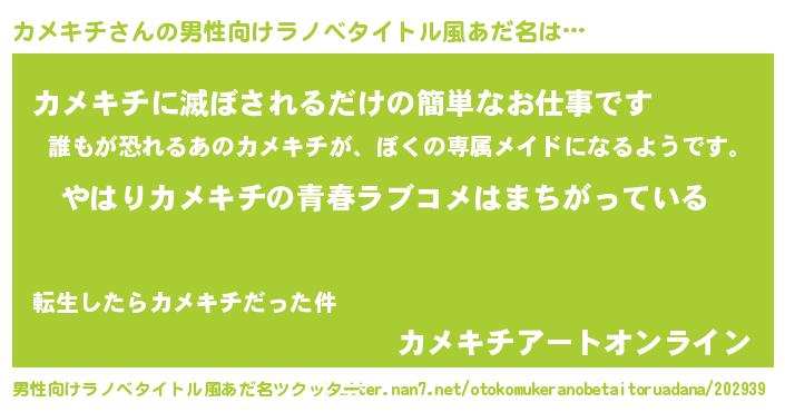 | 女子向けラノベタイトル風あだ名 | 『カメキチの雑貨屋さん』 |