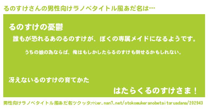 | 女子向けラノベタイトル風あだ名 | 『るのすけ伯爵の花嫁』 |