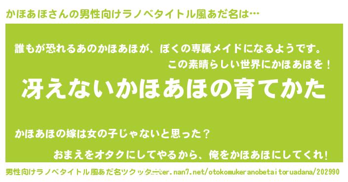 | 意味不明あだ名 | 『永久保存かほあほ』『自称かほあほ』 |