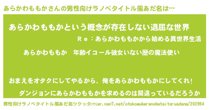 | 女子向けラノベタイトル風あだ名 | 『あらかわももかの玉の輿計画!』 |