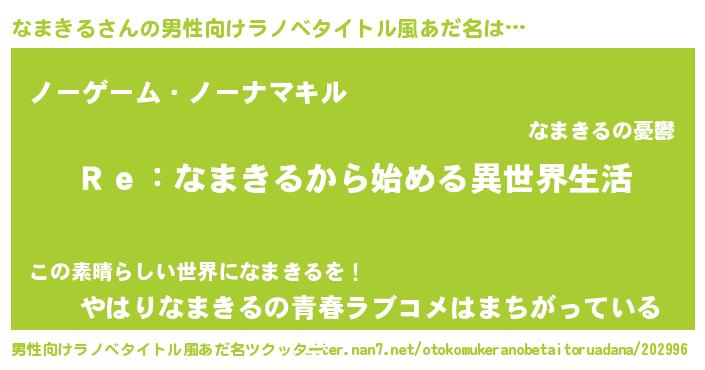 | 意味不明あだ名 | 『自称なまきる』『なまきるフォーエバー』 |