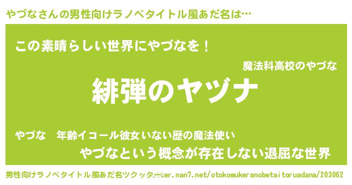 | ヘコむあだ名 | 『やづな(遠い目)』『やづお』 |