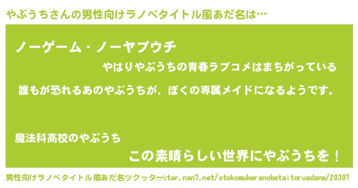 | 意味不明あだ名 | 『永久保存やぶうち』『自称やぶうち』 |