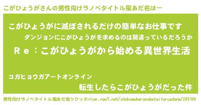 | 意味不明あだ名 | 『自称こがひょうが』 |