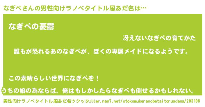 | ヘコむあだ名 | 『なぎぺ(笑)』『なぎもー』『なぎを』 |