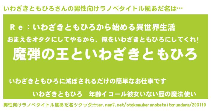 | 意味不明あだ名 | 『住所不定無職いわざきともひろ(12歳)』 |