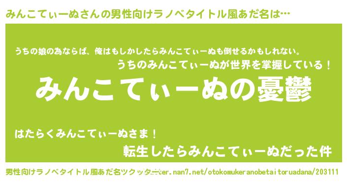 | 胡散臭い通販商品みたいなあだ名 | 『モテモテ間違いなし霊験あらたかなお札…その名も「みんこてぃーぬ」』 |