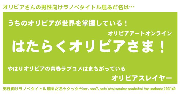 | ヒーロー風カッコイイあだ名 | 『スーパーオリビア』『仮面オリダー』 |
