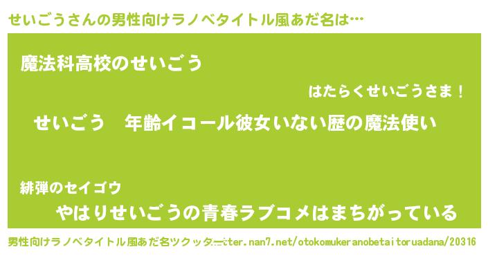 | ヒーロー風カッコイイあだ名 | 『究極戦士セイゴウ』『愛の使者せいごう』 |