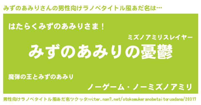 みずのあみりさんの男性向けラノベタイトル風あだ名をツクッター!