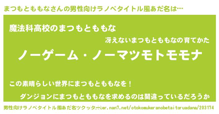まつもとももなさんの男性向けラノベタイトル風あだ名をツクッター!