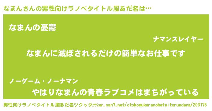 | ファンタジー風あだ名 | 『ナマフェル』『エターナルナマンー』 |