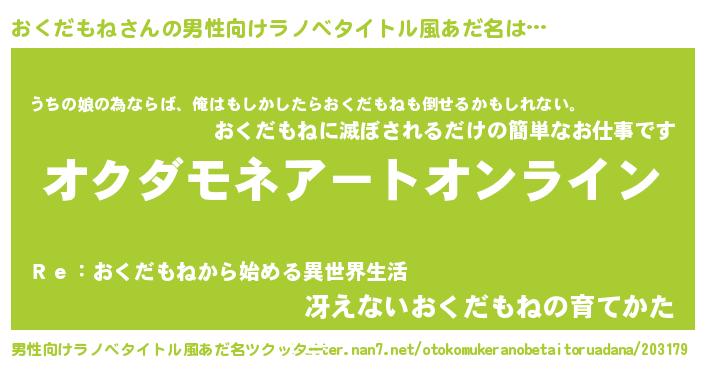 | 胡散臭い通販商品みたいなあだ名 | 『億万長者になれるブレスレット…その名も「おくだもね」』 |