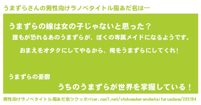 | 女子向けラノベタイトル風あだ名 | 『うまずら夫妻のなれそめ』 |